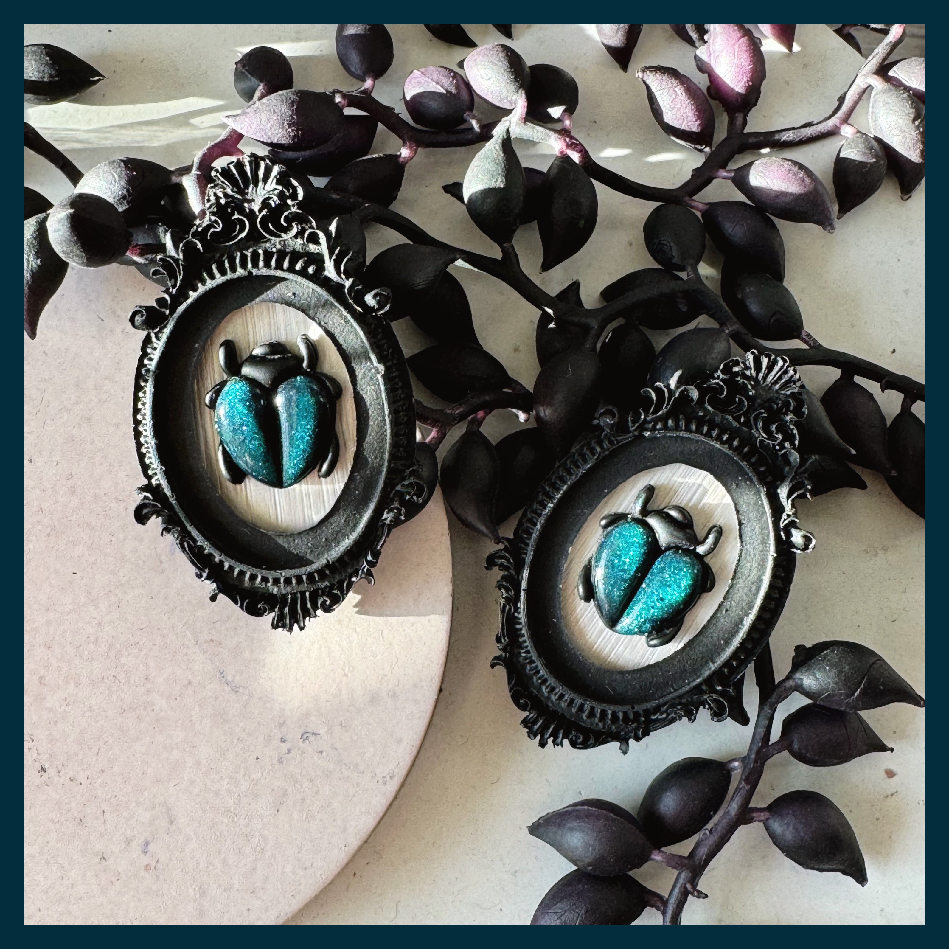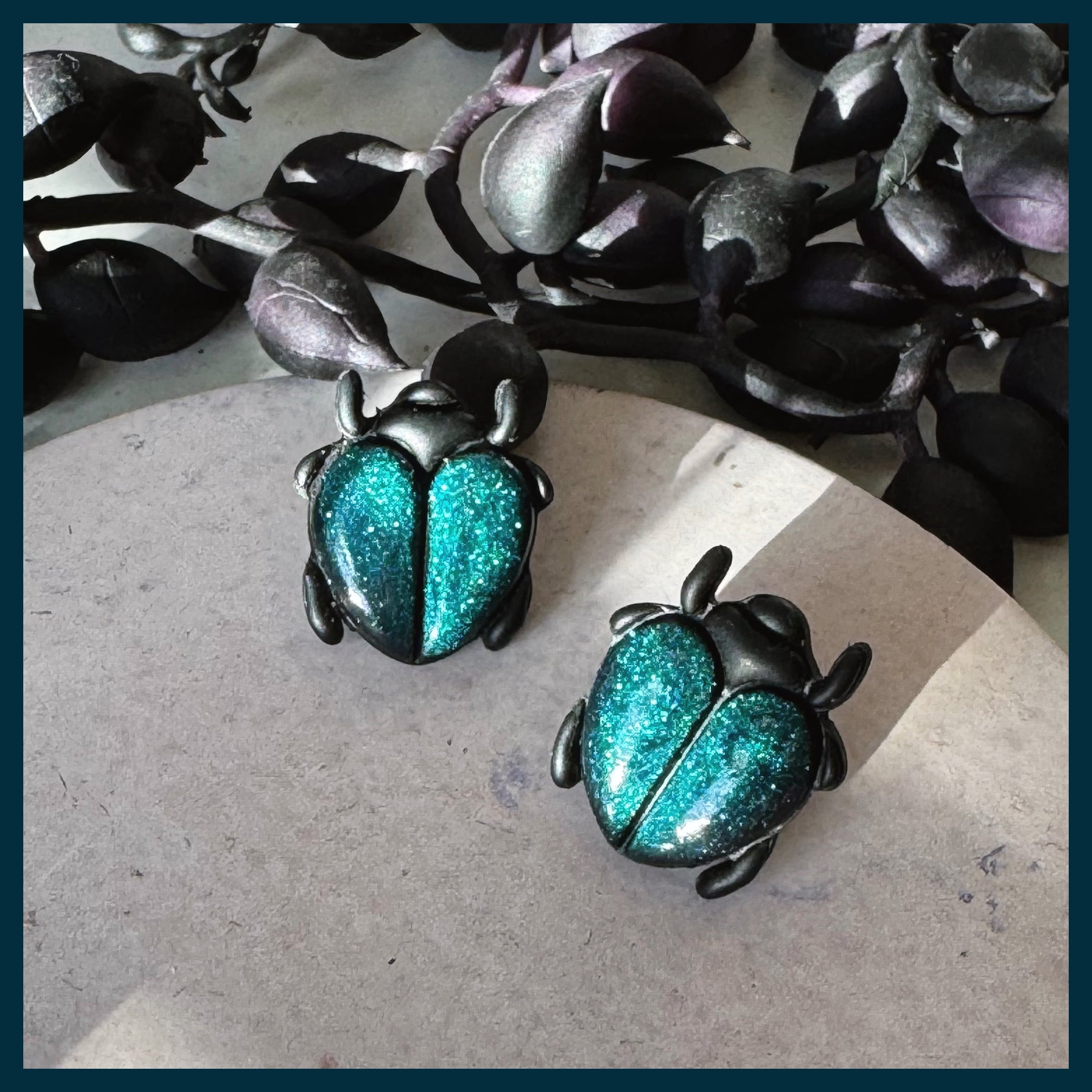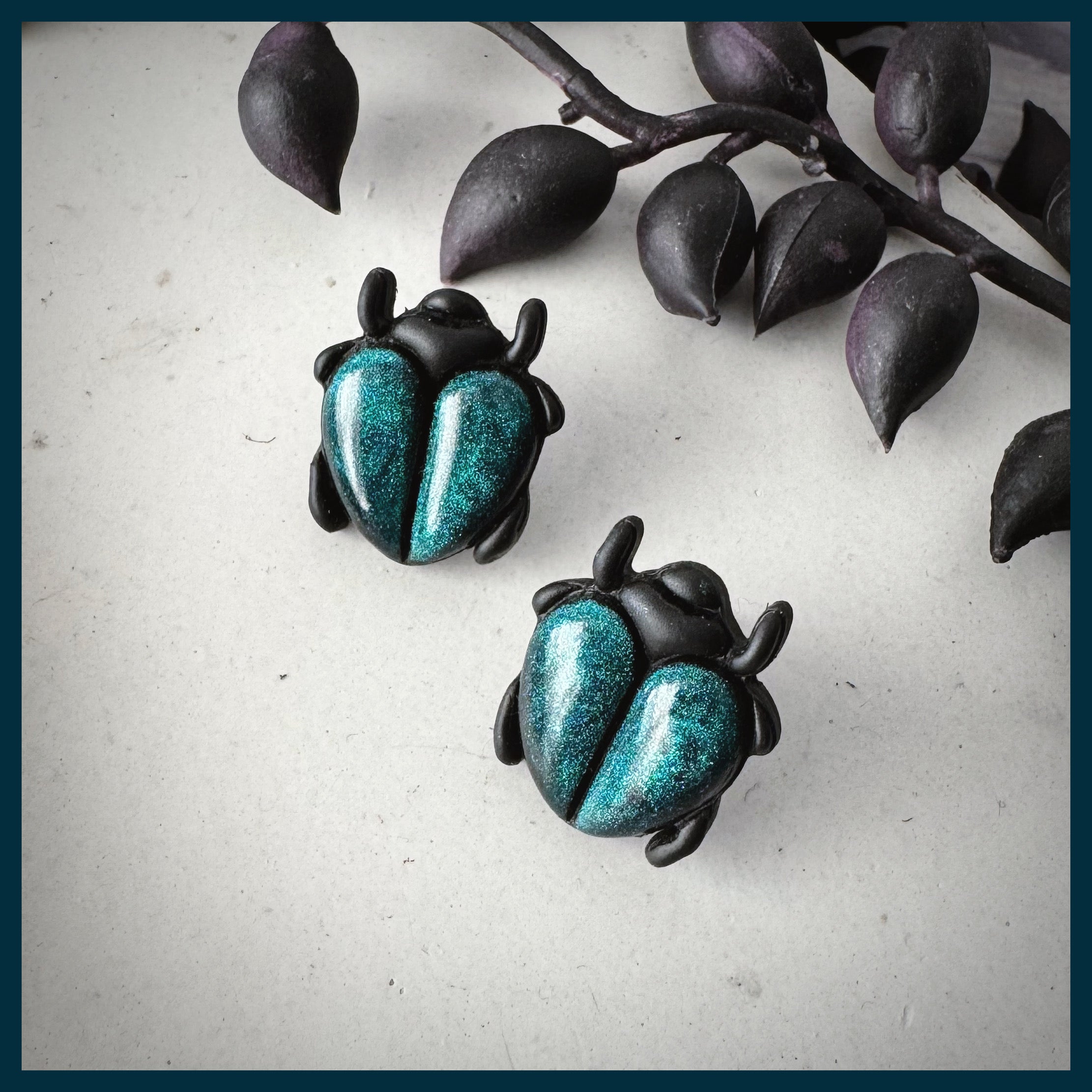 These little love bugs are so striking and so sparkly! Their bodies have a sort of teal green, cat eye effect that is so beautiful!